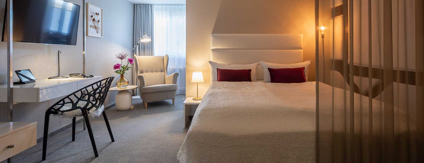 Dachschrägen, französische Betten, kuschelig kleine Rückzugsorte oder große Suiten. Jedes unserer Zimmer ist einzigartig und zu jedem individuellen Zimmer bieten wir individuelle Angebote.